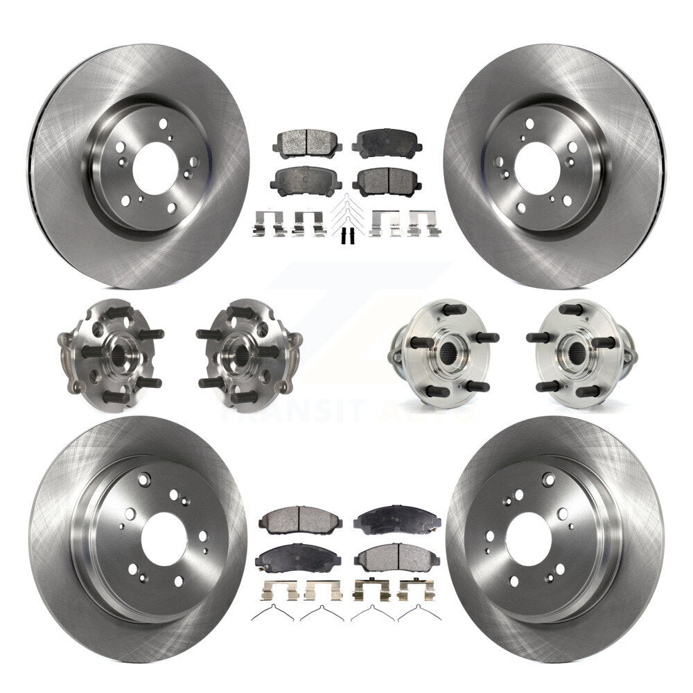Front Rear Hub Bearings Assembly Disc Brake Rotors And Ceramic Pads Kit (10Pc) For Honda Pilot Acura MDX ZDX KBB-110320