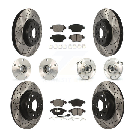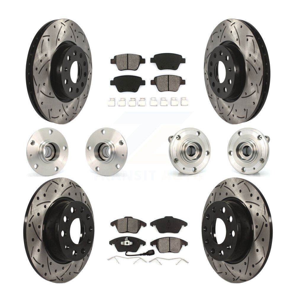 Front Rear Hub Bearings Assembly Coated Disc Brake Rotors And Semi-Metallic Pads Kit (10Pc) For Volkswagen GTI With 30mm bearing KBB-110997