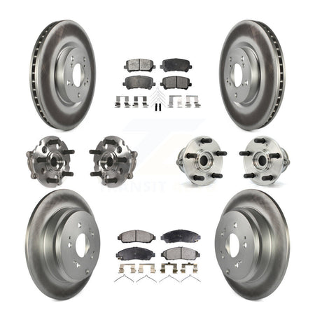 Front Rear Hub Bearings Assembly Coated Disc Brake Rotors And Semi-Metallic Pads Kit (10Pc) For Honda Pilot Acura MDX ZDX KBB-111573