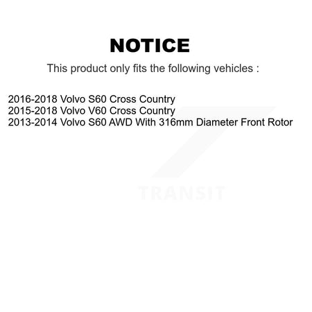 Front Rear Hub Bearings Assembly Coated Disc Brake Rotors And Semi-Metallic Pads Kit (10Pc) For Volvo S60 V60 Cross Country KBB-111664