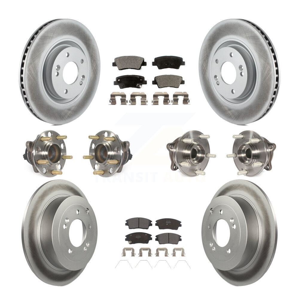 Front Rear Hub Bearings Assembly Coated Disc Brake Rotors And Semi-Metallic Pads Kit (10Pc) For 2017-2021 Kia Sportage FWD with Turbocharged With Manual Parking KBB-111712
