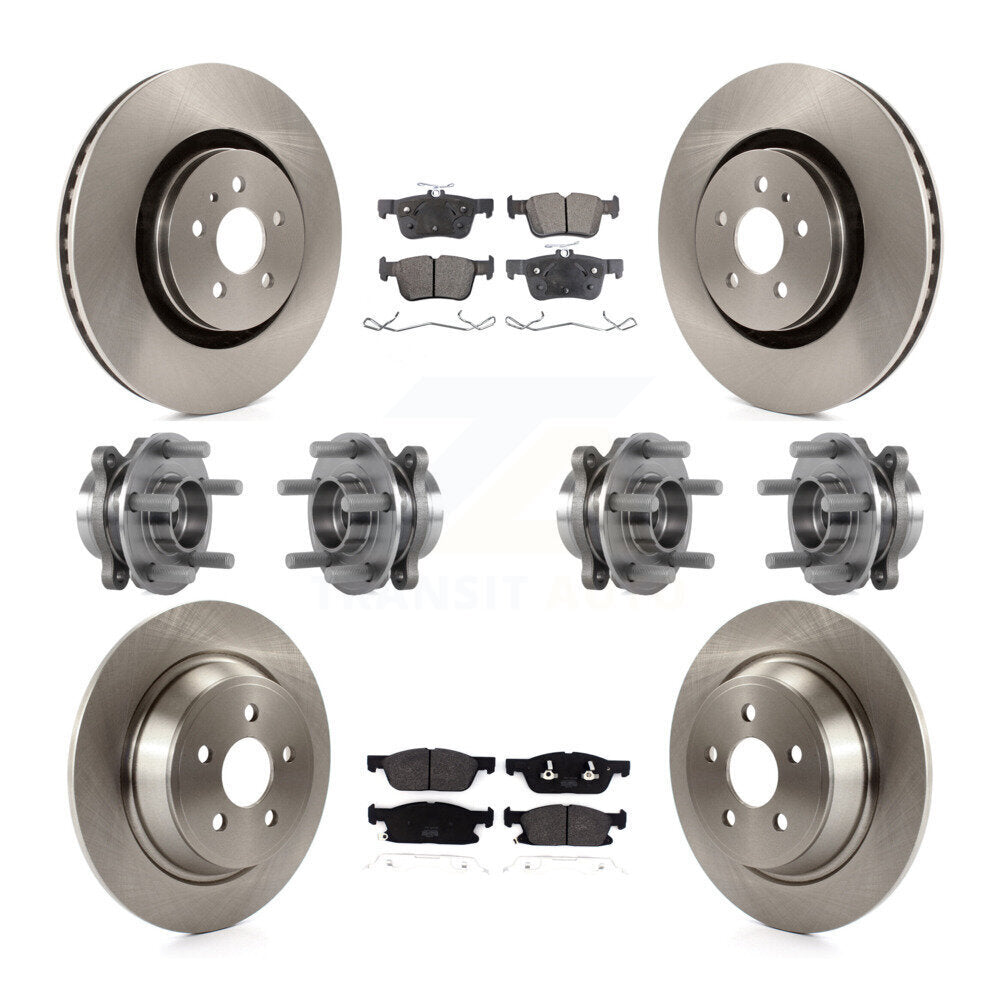 Front Rear Hub Bearings Assembly Disc Brake Rotors And Semi-Metallic Pads Kit (10Pc) For Lincoln Continental AWD KBB-113347