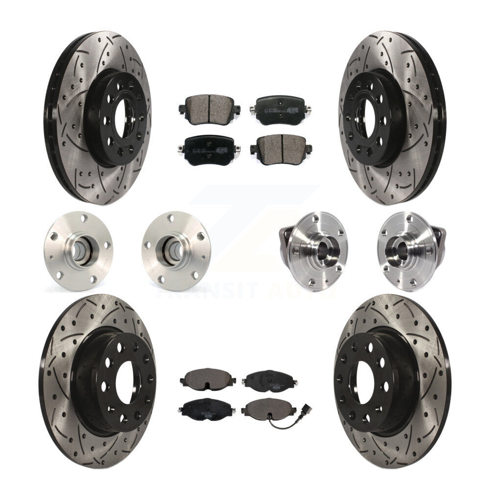 Front Rear Hub Bearings Assembly Coated Disc Brake Rotors And Ceramic Pads Kit (10Pc) For Volkswagen Golf SportWagen KBB-113628