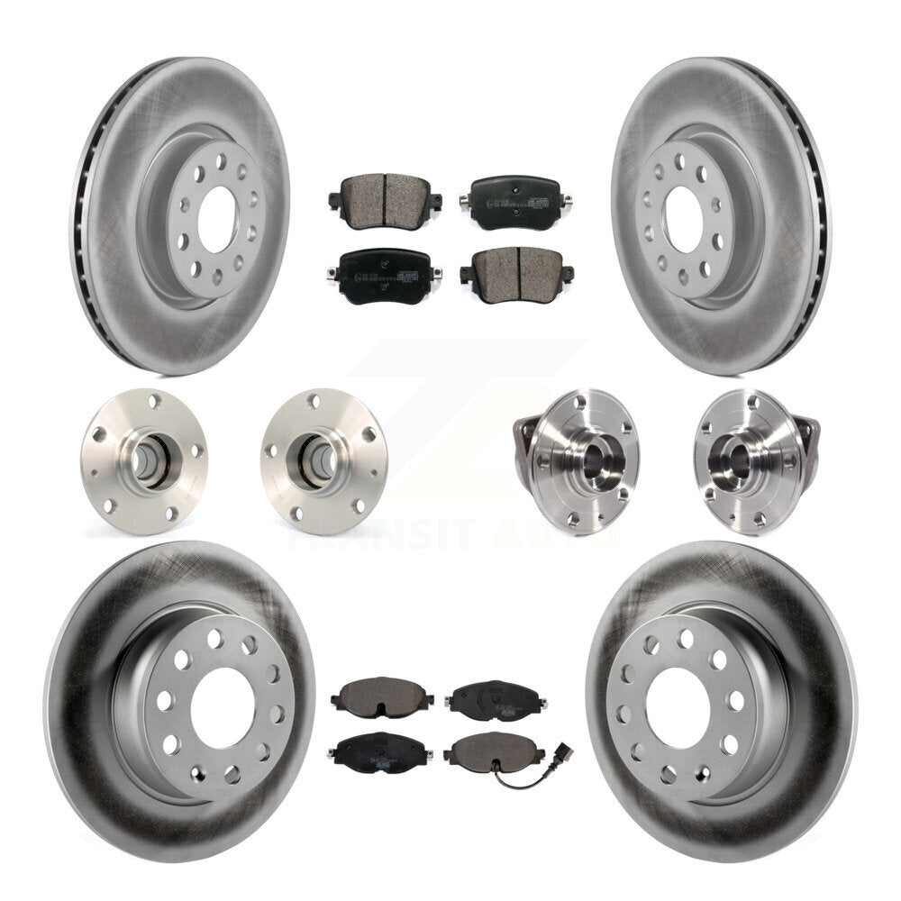 Front Rear Hub Bearings Assembly Coated Disc Brake Rotors And Ceramic Pads Kit (10Pc) For 2015-2018 Volkswagen GTI Without Performance Package KBB-113913