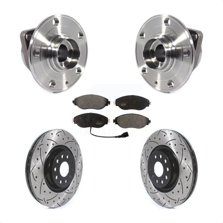Front Hub Bearing Assembly With Coated Drilled Slotted Disc Brake Rotors And Semi-Metallic Pads Kit For Volkswagen Tiguan Jetta GTI Audi Golf R S3 Q3 Arteon KBB-114531