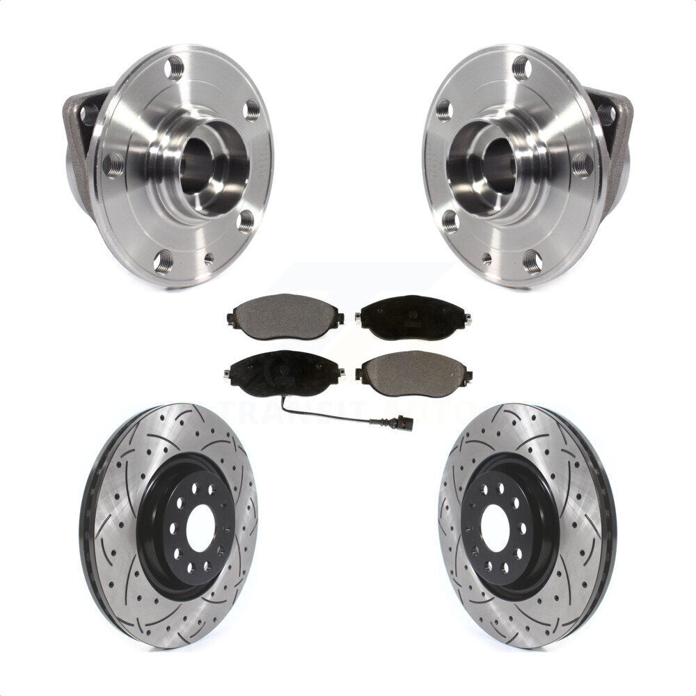 Front Hub Bearing Assembly With Coated Drilled Slotted Disc Brake Rotors And Ceramic Pads Kit For Volkswagen Tiguan Jetta GTI Audi Golf R S3 Q3 Arteon KBB-114598