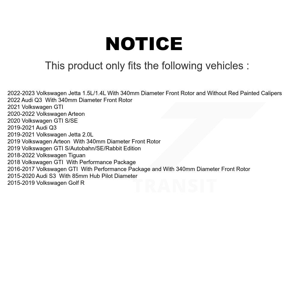 Front Hub Bearing Assembly With Coated Disc Brake Rotors And Semi-Metallic Pads Kit For Volkswagen Tiguan Jetta GTI Audi Golf R S3 Q3 Arteon KBB-114652