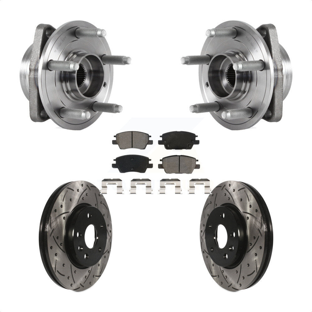 Front Hub Bearing Assembly With Coated Drilled Slotted Disc Brake Rotors And Semi-Metallic Pads Kit For Chevrolet Volt Bolt EV KBB-115259