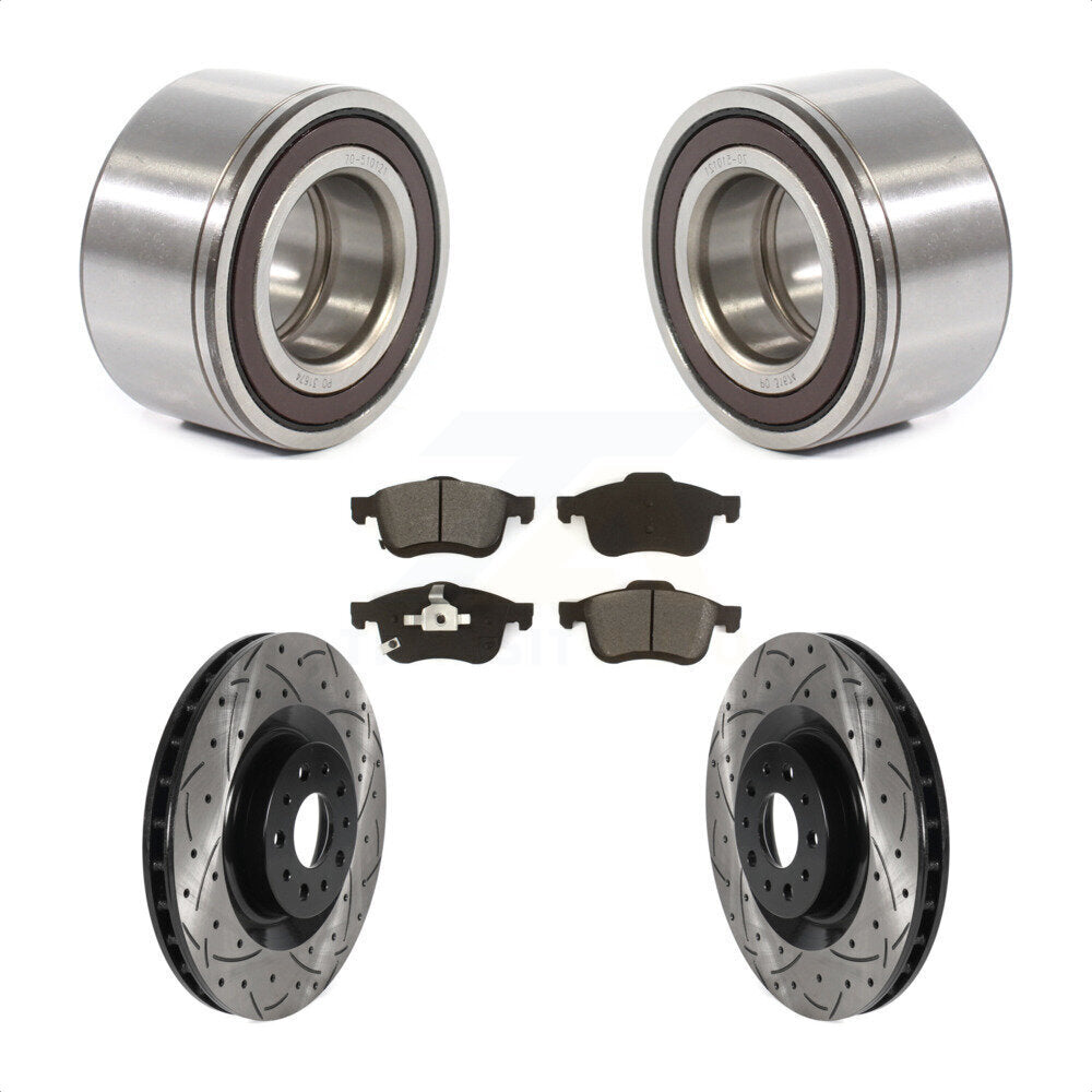 Front Wheel Bearing With Coated Drilled Slotted Disc Brake Rotors And Semi-Metallic Pads Kit For 2014-2018 Fiat 500L KBB-115585
