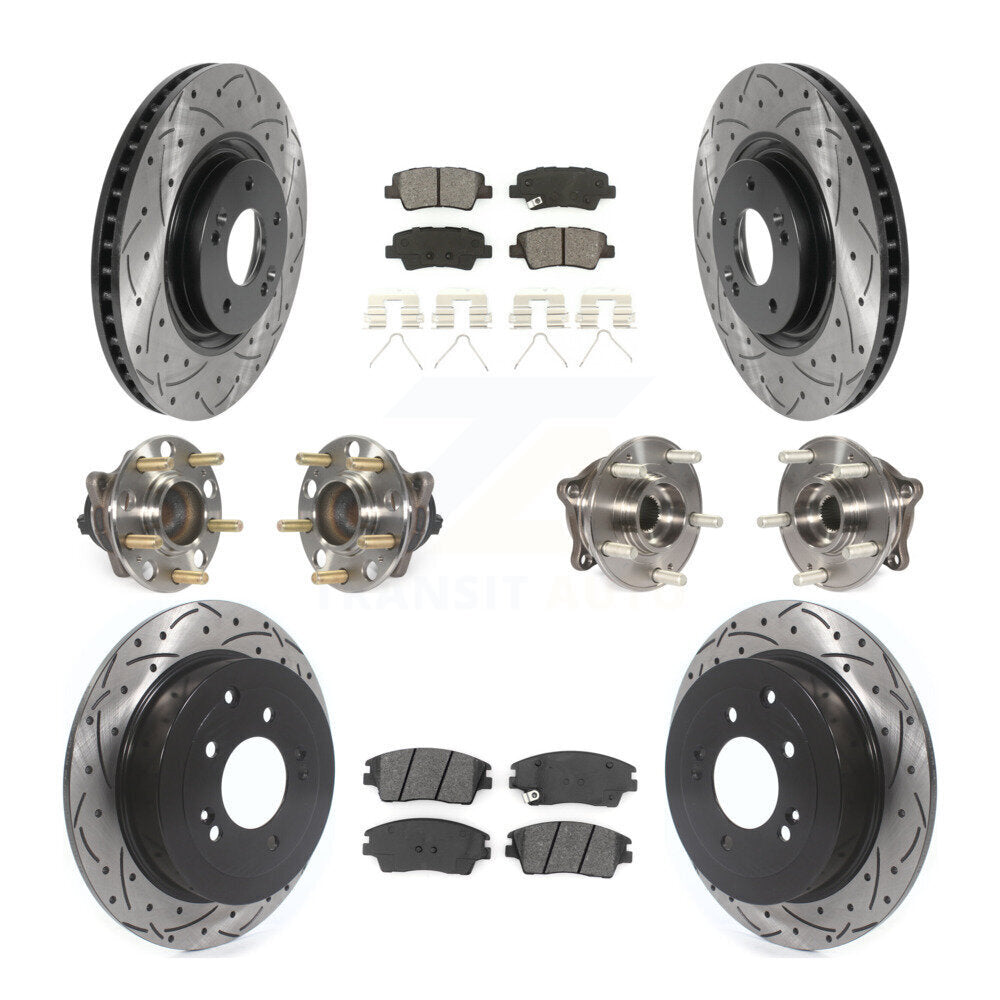 Front Rear Hub Bearings Assembly Coated Disc Brake Rotors And Semi-Metallic Pads Kit (10Pc) For 2017-2021 Kia Sportage FWD with Turbocharged With Manual Parking KBB-115861