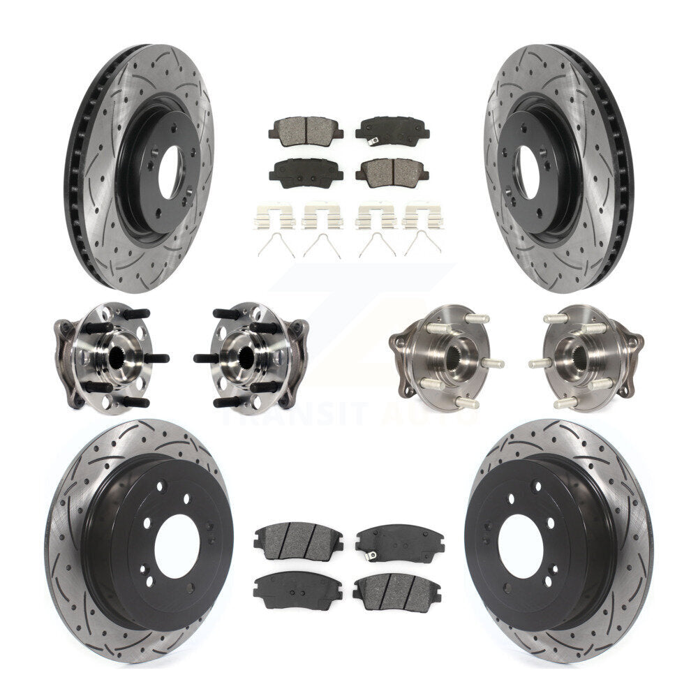Front Rear Hub Bearings Assembly Coated Disc Brake Rotors And Semi-Metallic Pads Kit (10Pc) For 2017-2021 Kia Sportage AWD with Turbocharged With Manual Parking KBB-115889