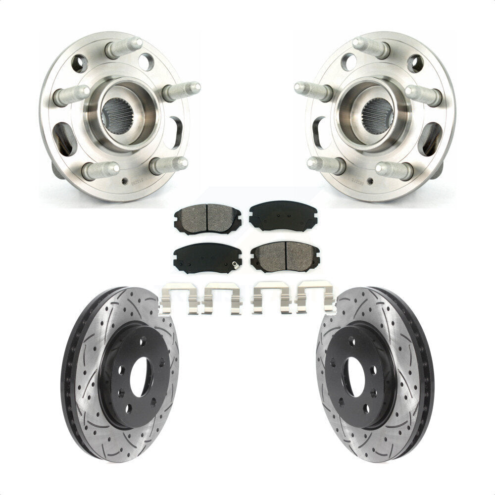 Front Hub Bearing Assembly With Coated Drilled Slotted Disc Brake Rotors And Semi-Metallic Pads Kit For Chevrolet Malibu Buick LaCrosse Regal Limited KBB-115900