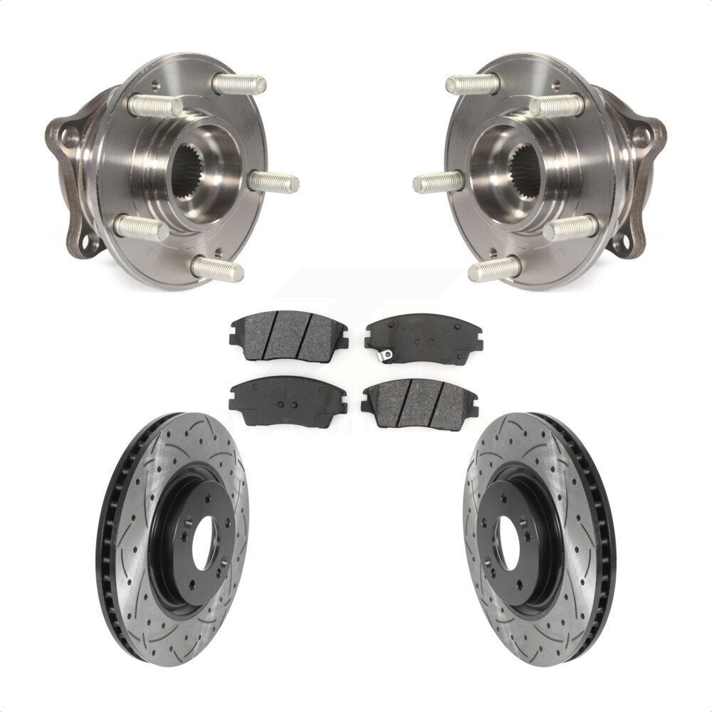 Front Hub Bearing Assembly With Coated Drilled Slotted Disc Brake Rotors And Semi-Metallic Pads Kit For 2017-2021 Kia Sportage Turbocharged KBB-115915