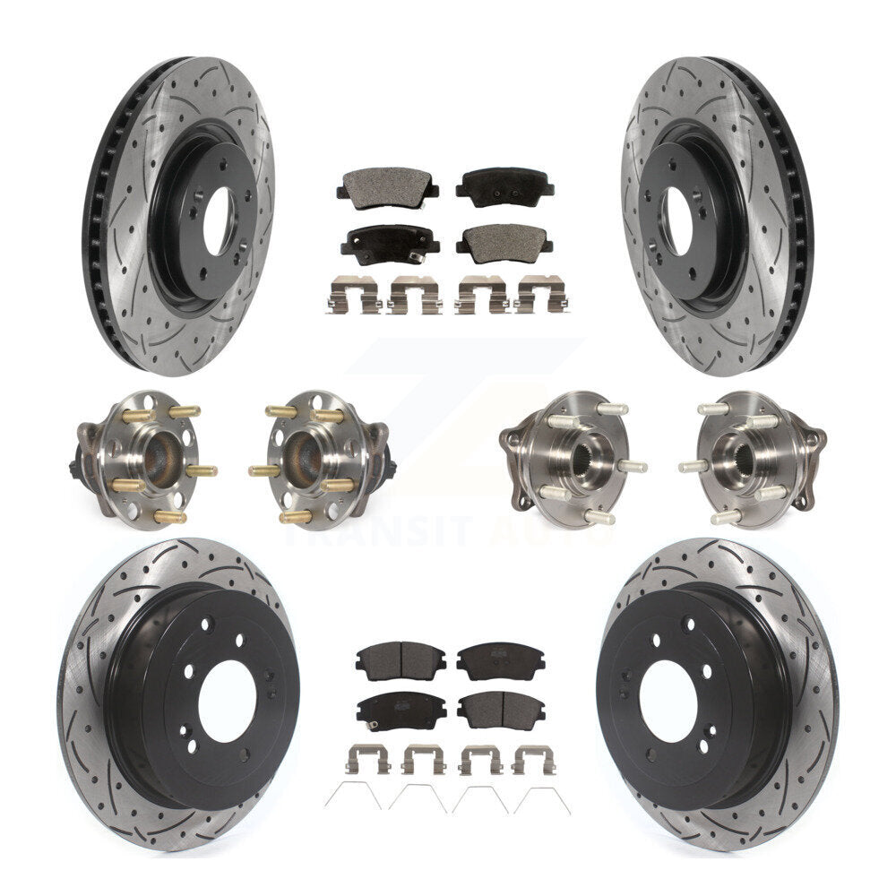 Front Rear Hub Bearings Assembly Coated Disc Brake Rotors And Ceramic Pads Kit (10Pc) For 2017-2021 Kia Sportage FWD with Turbocharged With Manual Parking KBB-115970