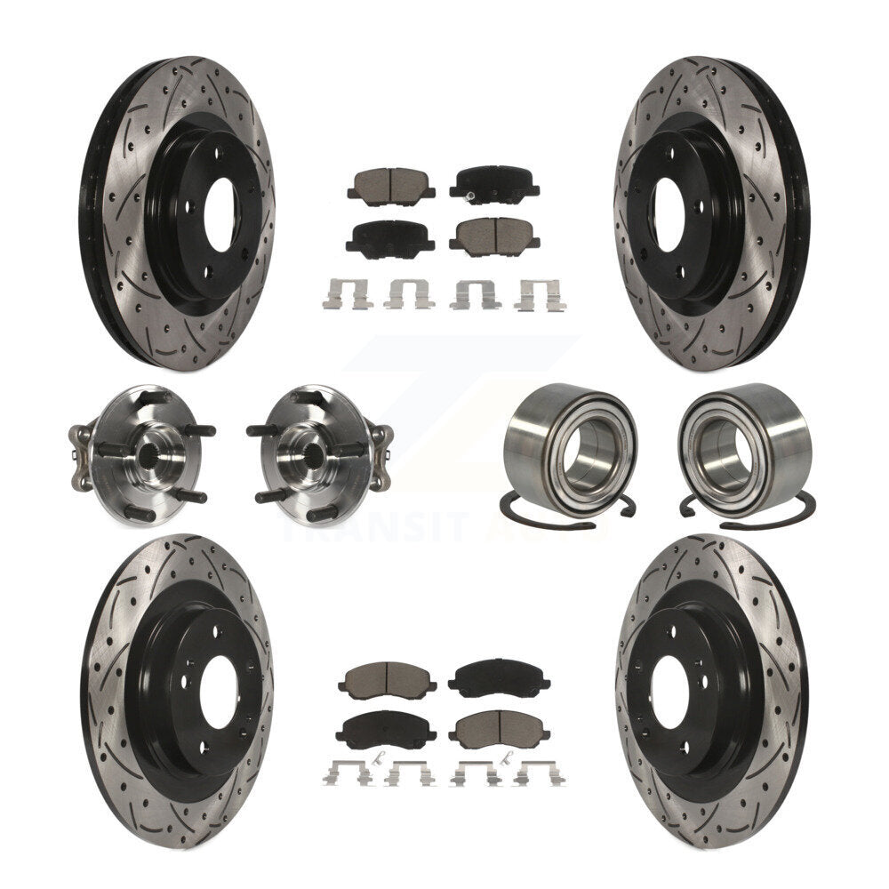 Front Rear Wheel Hub Bearings Assembly Coated Disc Brake Rotors And Ceramic Pads Kit (10Pc) For Mitsubishi Outlander Sport RVR KBB-117520