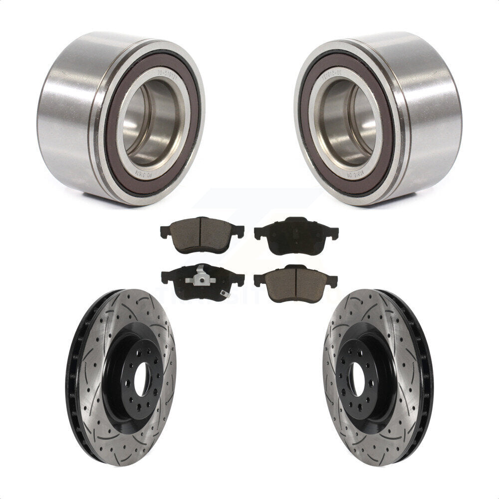 Front Wheel Bearing With Coated Drilled Slotted Disc Brake Rotors And Ceramic Pads Kit For 2014-2018 Fiat 500L KBB-117668
