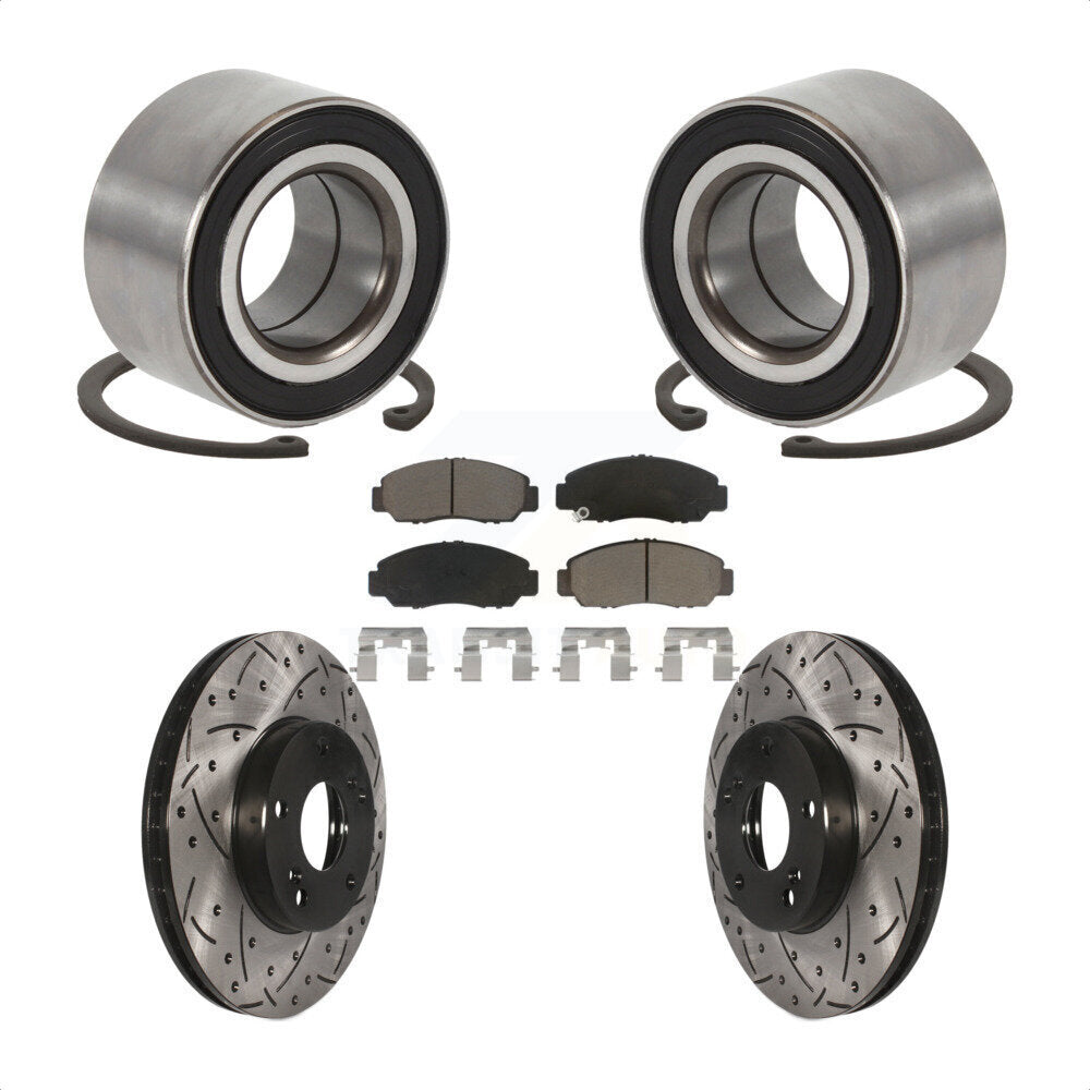Front Wheel Bearing With Coated Drilled Slotted Disc Brake Rotors And Ceramic Pads Kit For Honda Accord Acura CSX KBB-117697