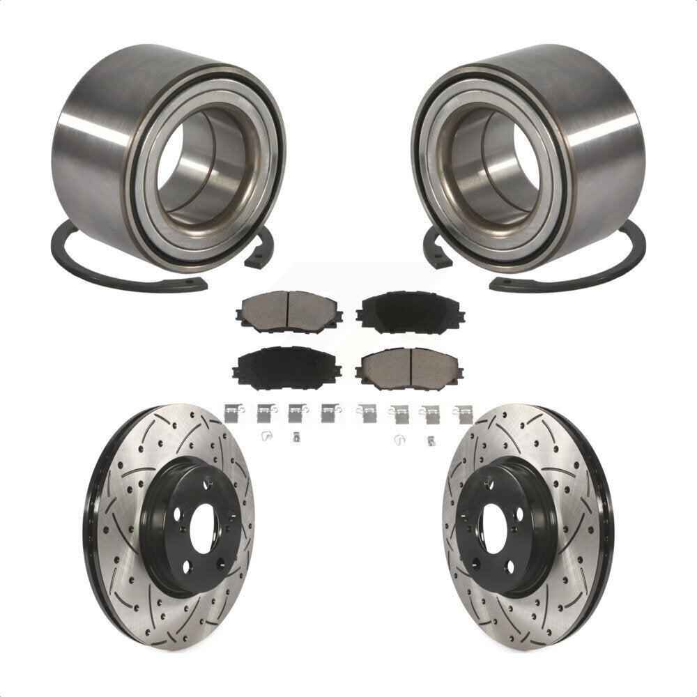 Front Wheel Bearing With Coated Drilled Slotted Disc Brake Rotors And Ceramic Pads Kit For Toyota Corolla Matrix Pontiac Vibe KBB-117731