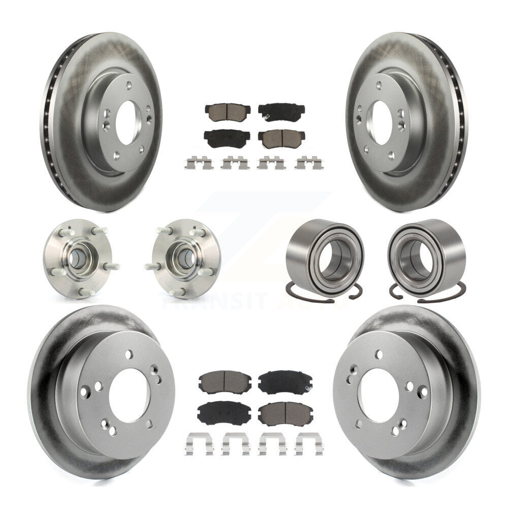 Front Rear Wheel Hub Bearings Assembly Coated Disc Brake Rotors And Ceramic Pads Kit (10Pc) For Kia Sportage Hyundai Tucson FWD KBB-117975