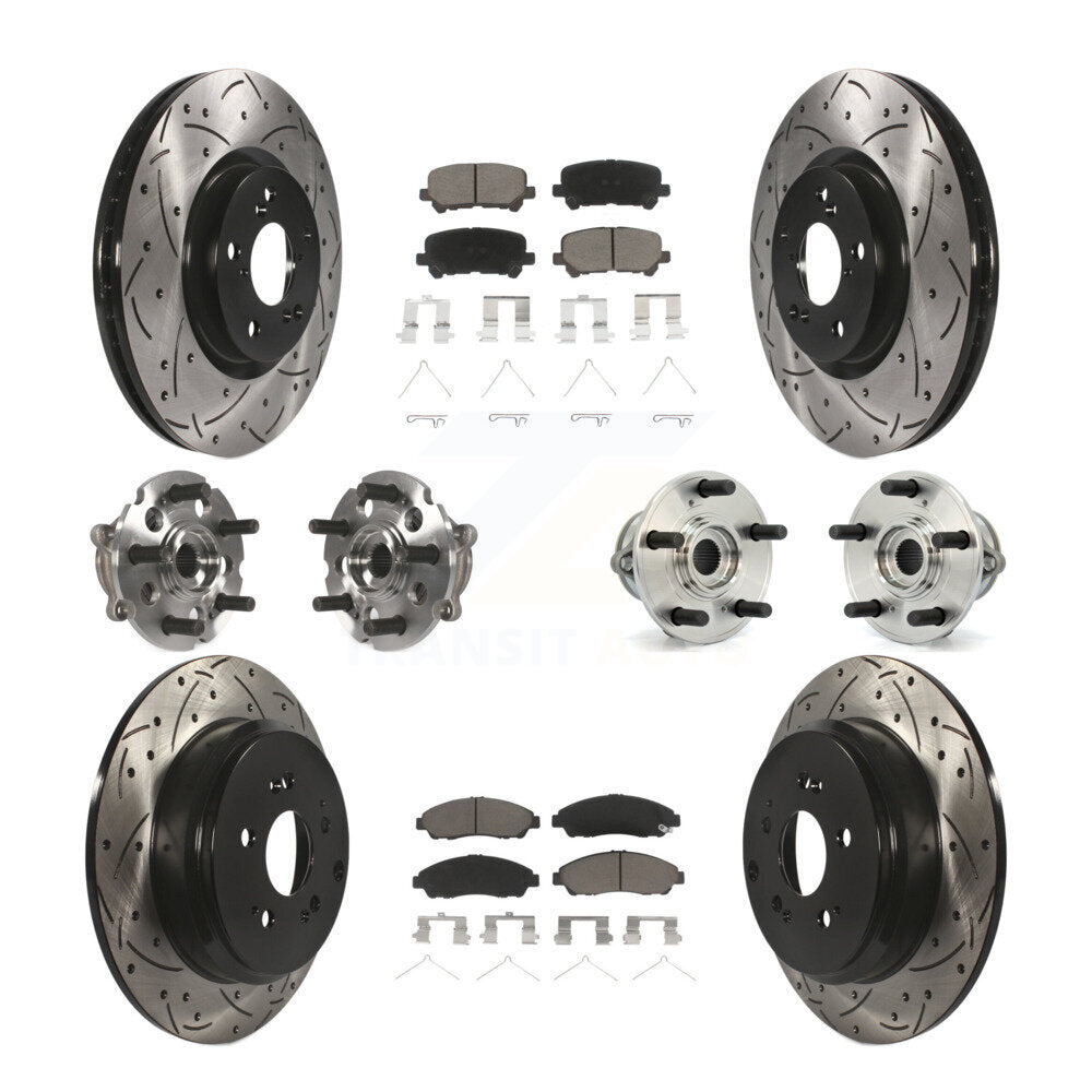 Front Rear Hub Bearings Assembly Coated Disc Brake Rotors And Ceramic Pads Kit (10Pc) For Honda Pilot Acura MDX ZDX KBB-120021