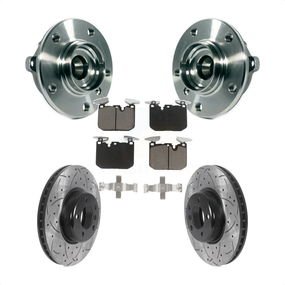 Front Hub Bearing Assembly With Coated Drilled Slotted Disc Brake Rotors And Ceramic Pads Kit For BMW 428i xDrive Gran Coupe 228i 340i 435i KBB-120220