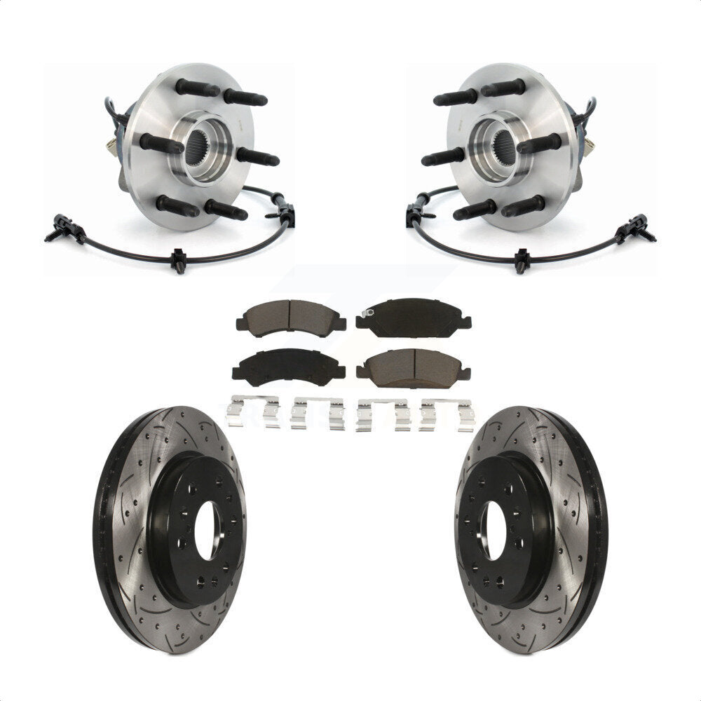 Front Hub Bearing Assembly With Coated Drilled Slotted Disc Brake Rotors And Ceramic Pads Kit For Chevrolet Silverado 1500 GMC Sierra Classic Express Savana KBB-120383