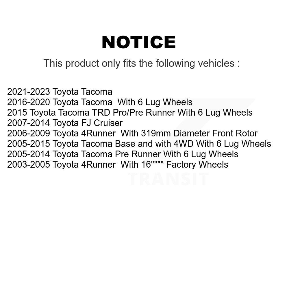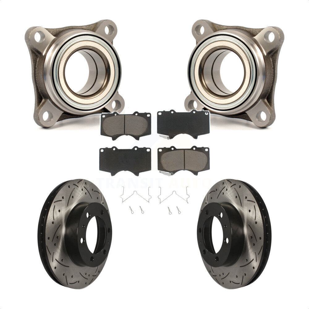 Front Wheel Bearing With Coated Drilled Slotted Disc Brake Rotors And Ceramic Pads Kit For Toyota Tacoma FJ Cruiser RWD KBB-122568