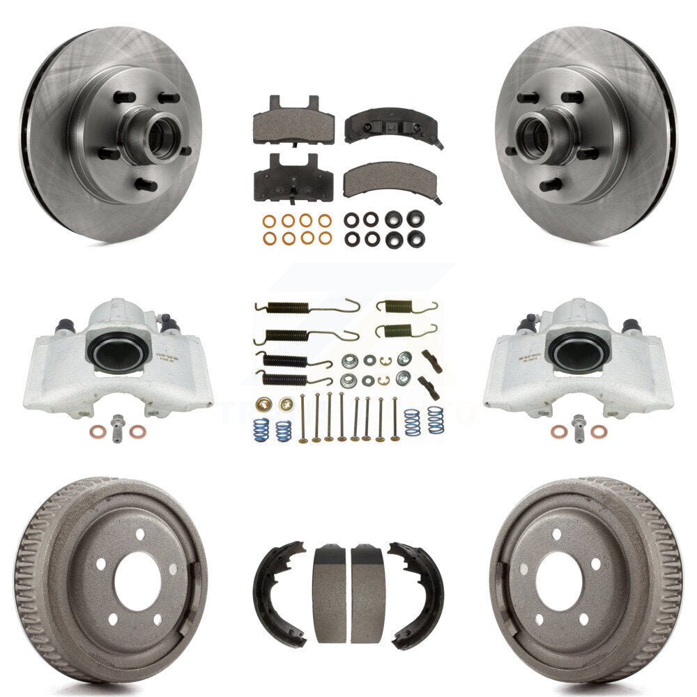 Front Rear Disc Brake Caliper Rotors Drums Semi-Metallic Pads Shoes And Hardware Kit (9Pc) For 1995-1997 GMC Yukon RWD with GAS engine With 11" Diameter Drum KC8-100765P