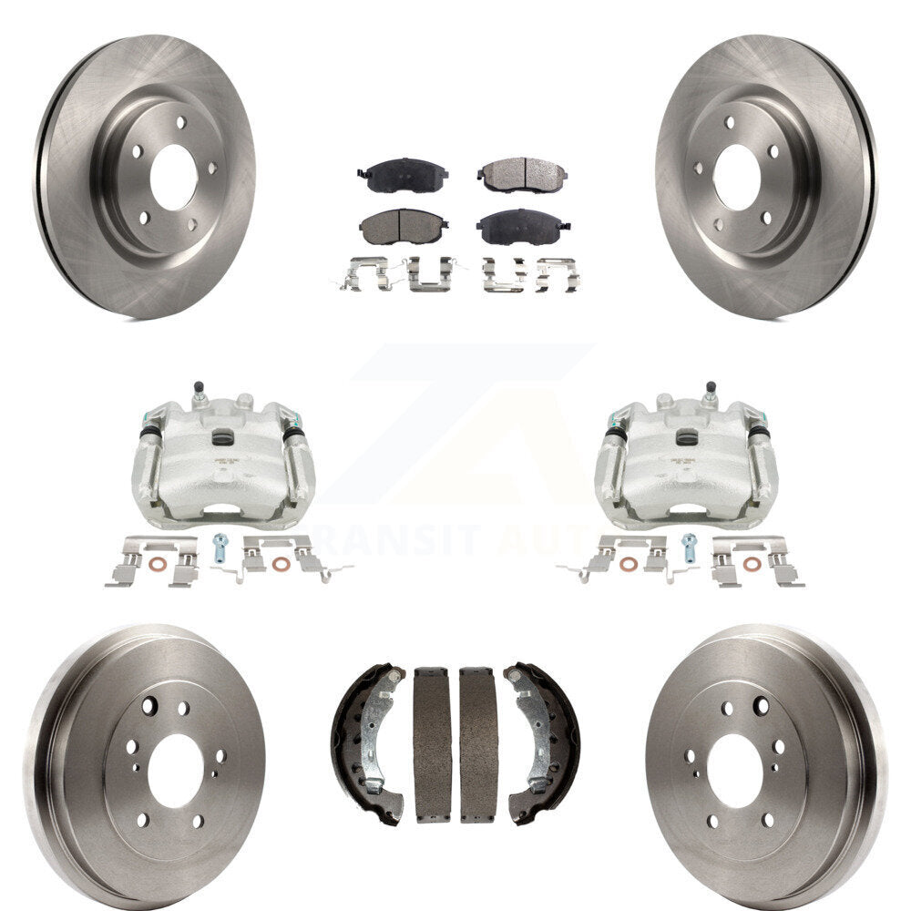 Front Rear Disc Brake Caliper Rotors Drums Ceramic Pads Kit (8Pc) For 2017-2019 Nissan Sentra Turbocharged KC8-100821T