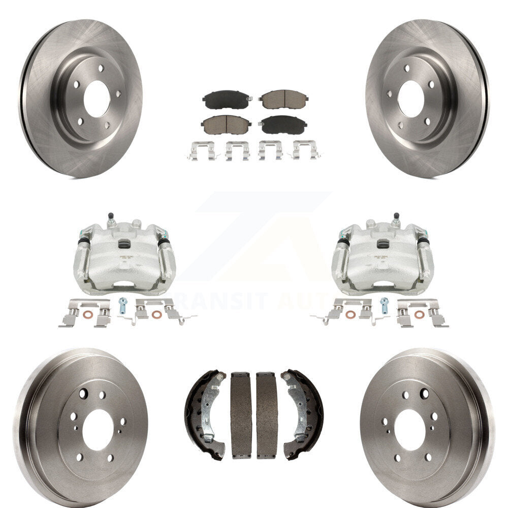 Front Rear Disc Brake Caliper Rotors Drums Ceramic Pads Kit (8Pc) For 2017-2019 Nissan Sentra Turbocharged KC8-100825C