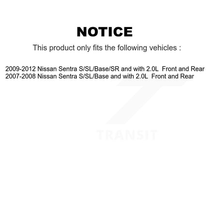 Front Rear Disc Brake Caliper Rotors Drums Ceramic Pads Kit (8Pc) For Nissan Sentra KC8-100835T