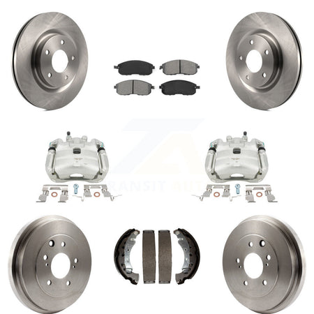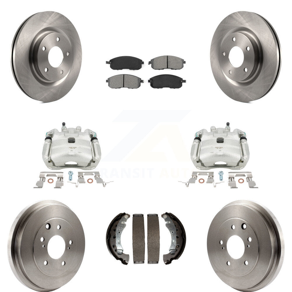 Front Rear Disc Brake Caliper Rotors Drums Semi-Metallic Pads Kit (8Pc) For 2017-2019 Nissan Sentra Turbocharged KC8-100851S