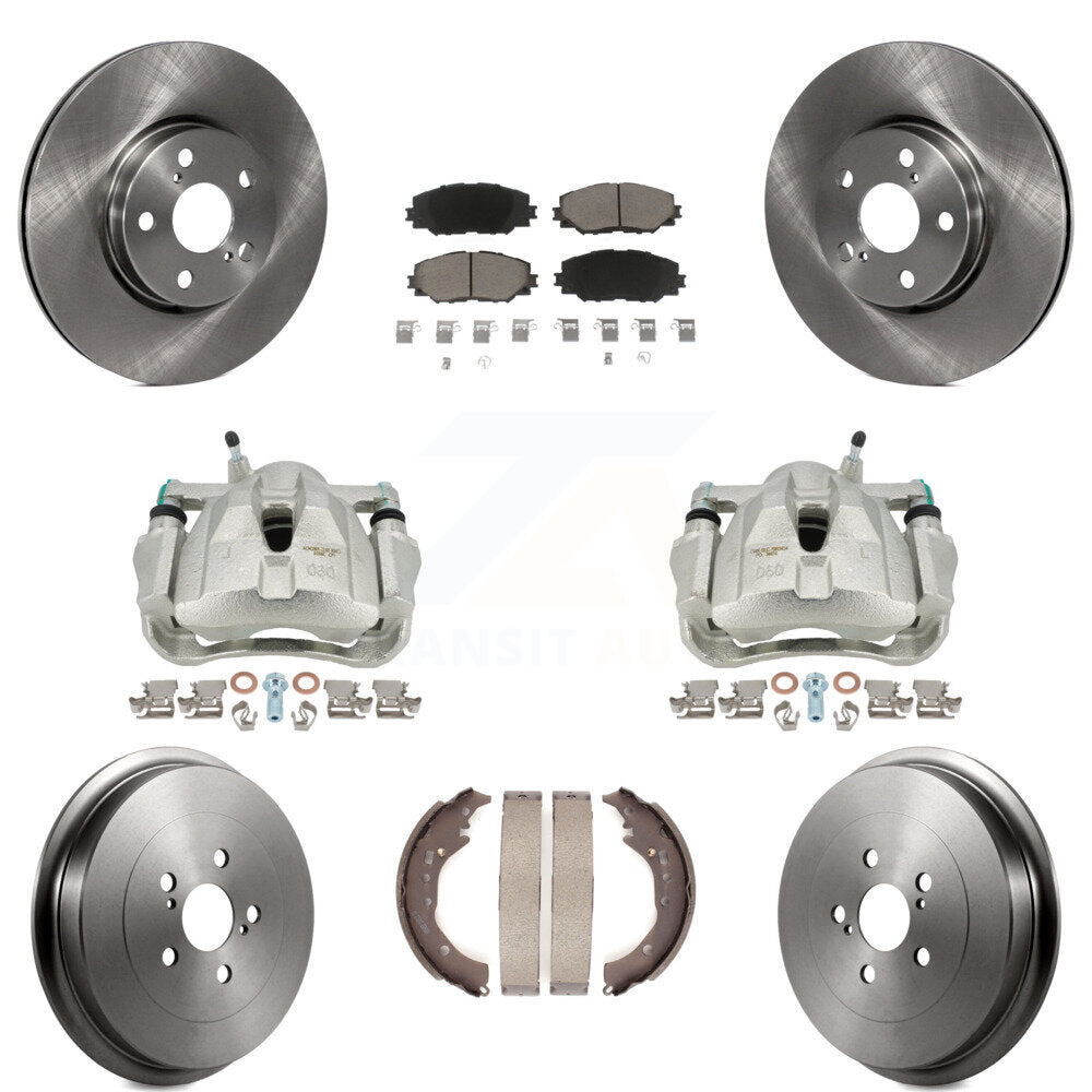 Front Rear Disc Brake Caliper Rotors Drums Ceramic Pads Kit (8Pc) For Toyota Corolla KC8-100857C