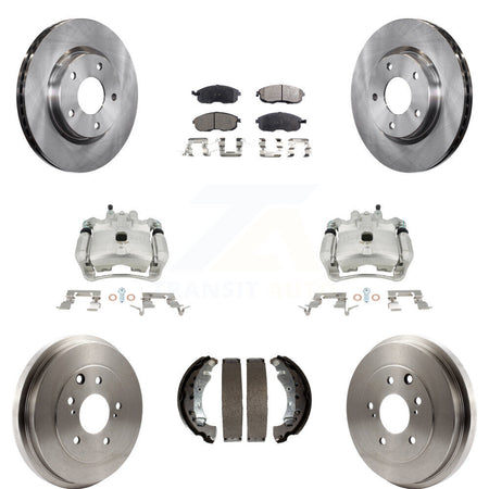 Front Rear Disc Brake Caliper Rotors Drums Semi-Metallic Pads Kit (8Pc) For Nissan Sentra KC8-100862P