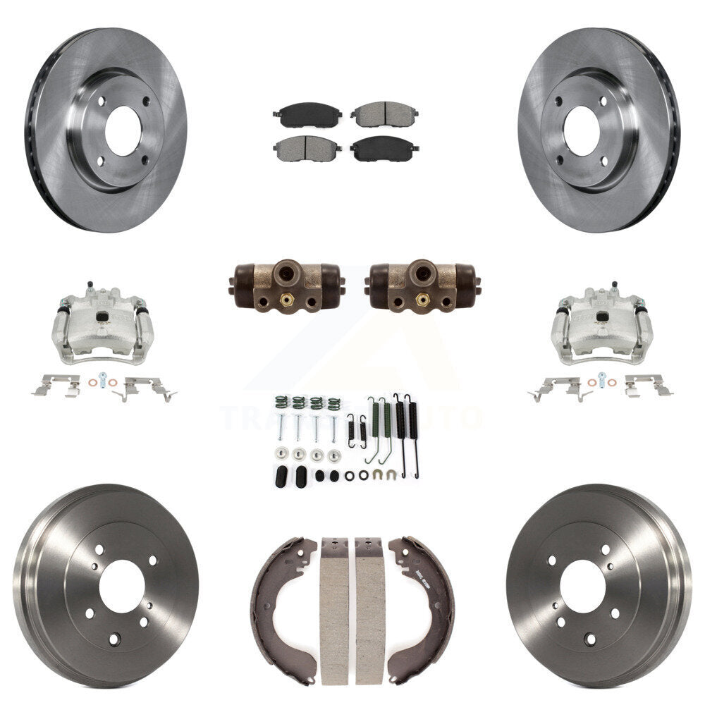 Front Rear Disc Brake Caliper Rotors Drums Semi-Metallic Pads Shoes Wheel Cylinders And Hardware Kit (11Pc) For Nissan Sentra KC8-100874S