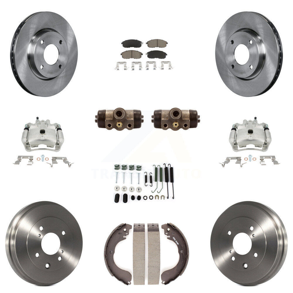 Front Rear Disc Brake Caliper Rotors Drums Ceramic Pads Shoes Wheel Cylinders And Hardware Kit (11Pc) For Nissan Sentra KC8-100886C