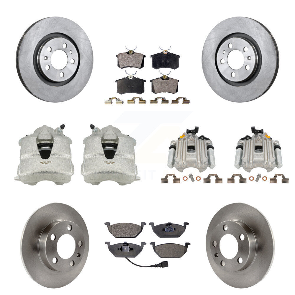Front Rear Disc Brake Caliper Rotors And Ceramic Pads Kit (10Pc) For Volkswagen Jetta City KC8-101140T