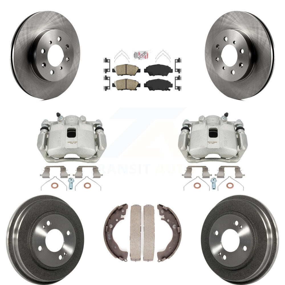 Front Rear Disc Brake Caliper Rotors Drums Ceramic Pads Kit (8Pc) For Honda Fit KC8-101530N