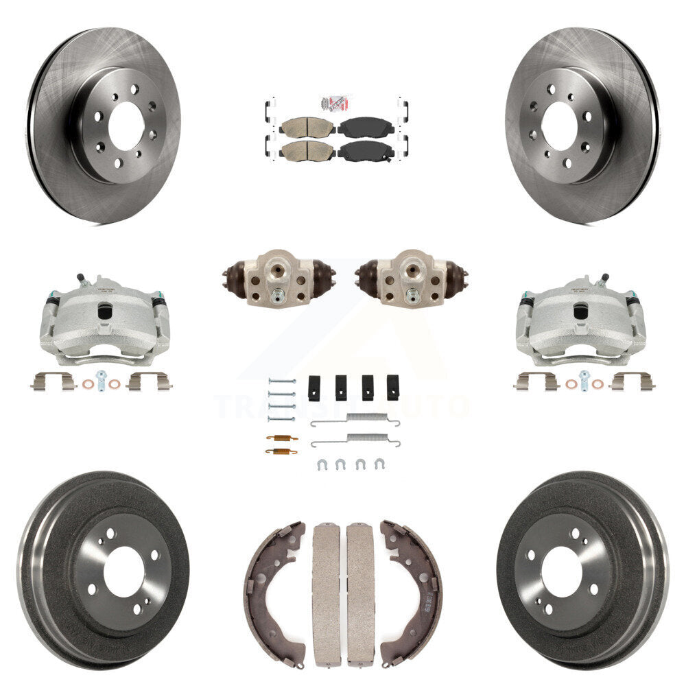 Front Rear Disc Brake Caliper Rotors Drums Ceramic Pads Shoes Wheel Cylinders And Hardware Kit (11Pc) For Honda Insight KC8-101697N