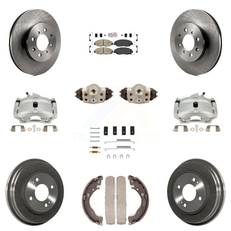 Front Rear Disc Brake Caliper Rotors Drums Ceramic Pads Shoes Wheel Cylinders And Hardware Kit (11Pc) For Honda Insight KC8-101698N