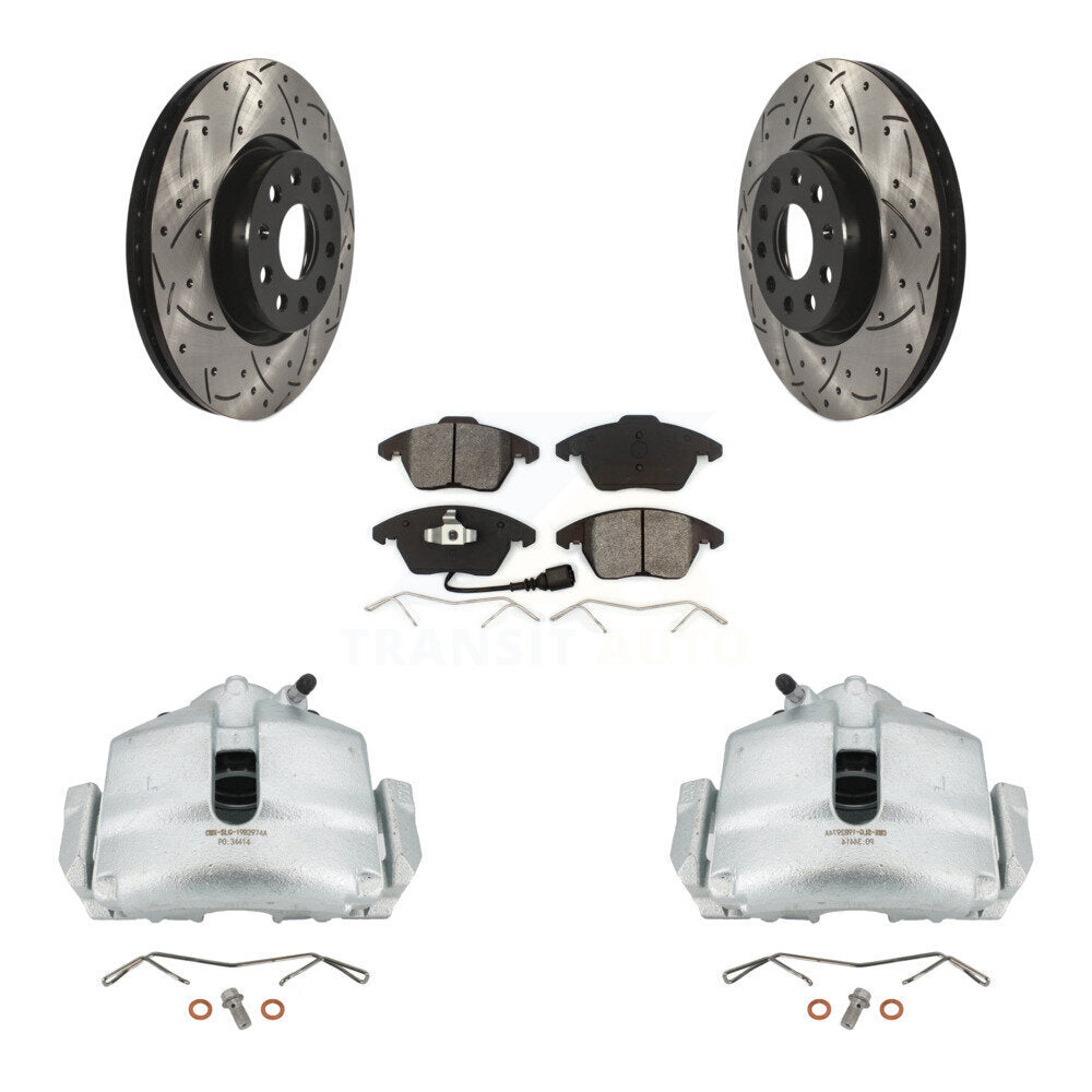 Front Disc Brake Coated Caliper Drilled Slotted Rotors And Semi-Metallic Pads Kit For Volkswagen Jetta Beetle CC Passat GTI Eos Audi A3 TT Quattro KCD-100001S