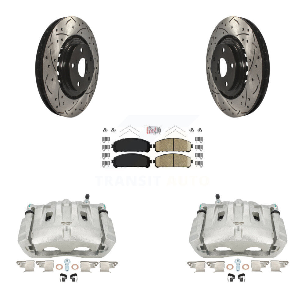 Front Disc Brake Coated Caliper Drilled Slotted Rotors And Ceramic Pads Kit For Toyota Highlander Sienna Lexus RX350 KCD-100008N