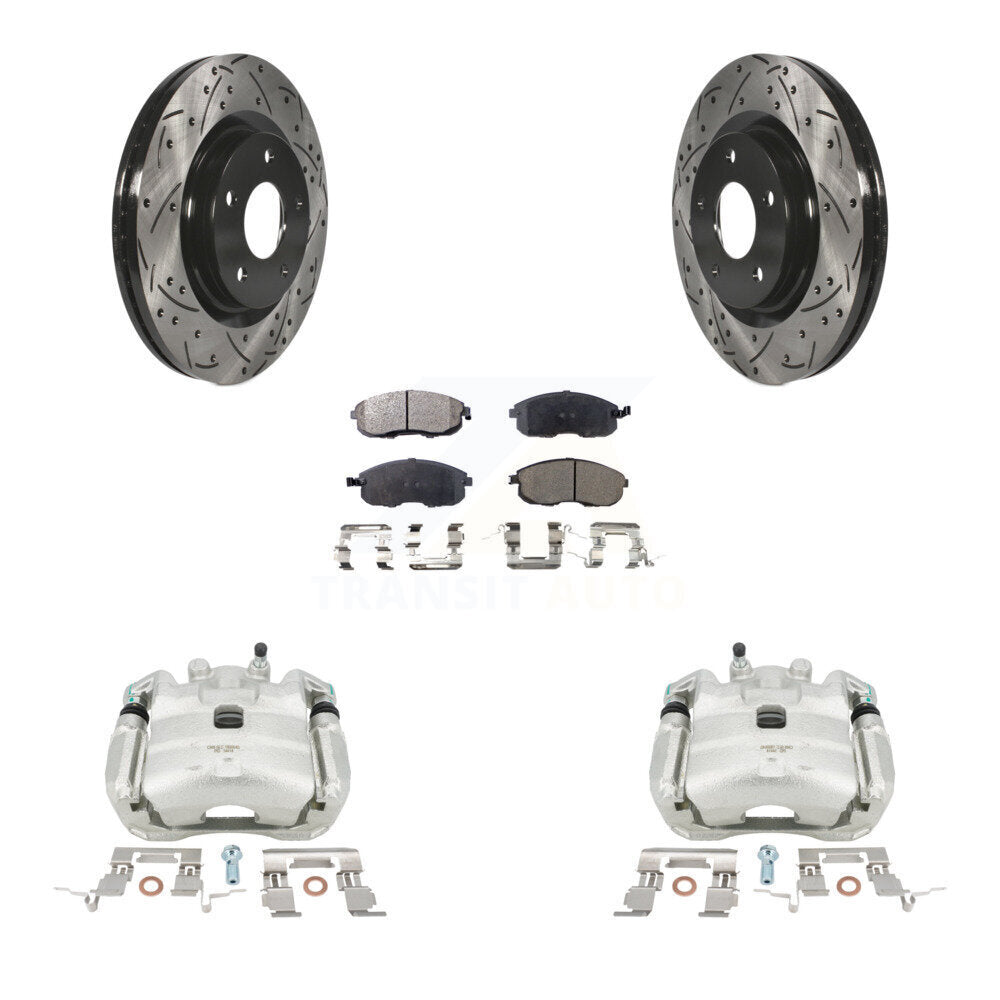 Front Disc Brake Coated Caliper Drilled Slotted Rotors And Ceramic Pads Kit For Nissan Sentra Juke KCD-100051T