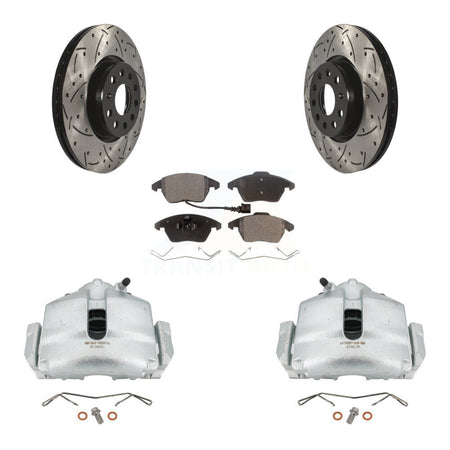 Front Disc Brake Coated Caliper Drilled Slotted Rotors And Semi-Metallic Pads Kit For Volkswagen Jetta Beetle CC Passat GTI Eos Audi A3 TT Quattro KCD-100059P