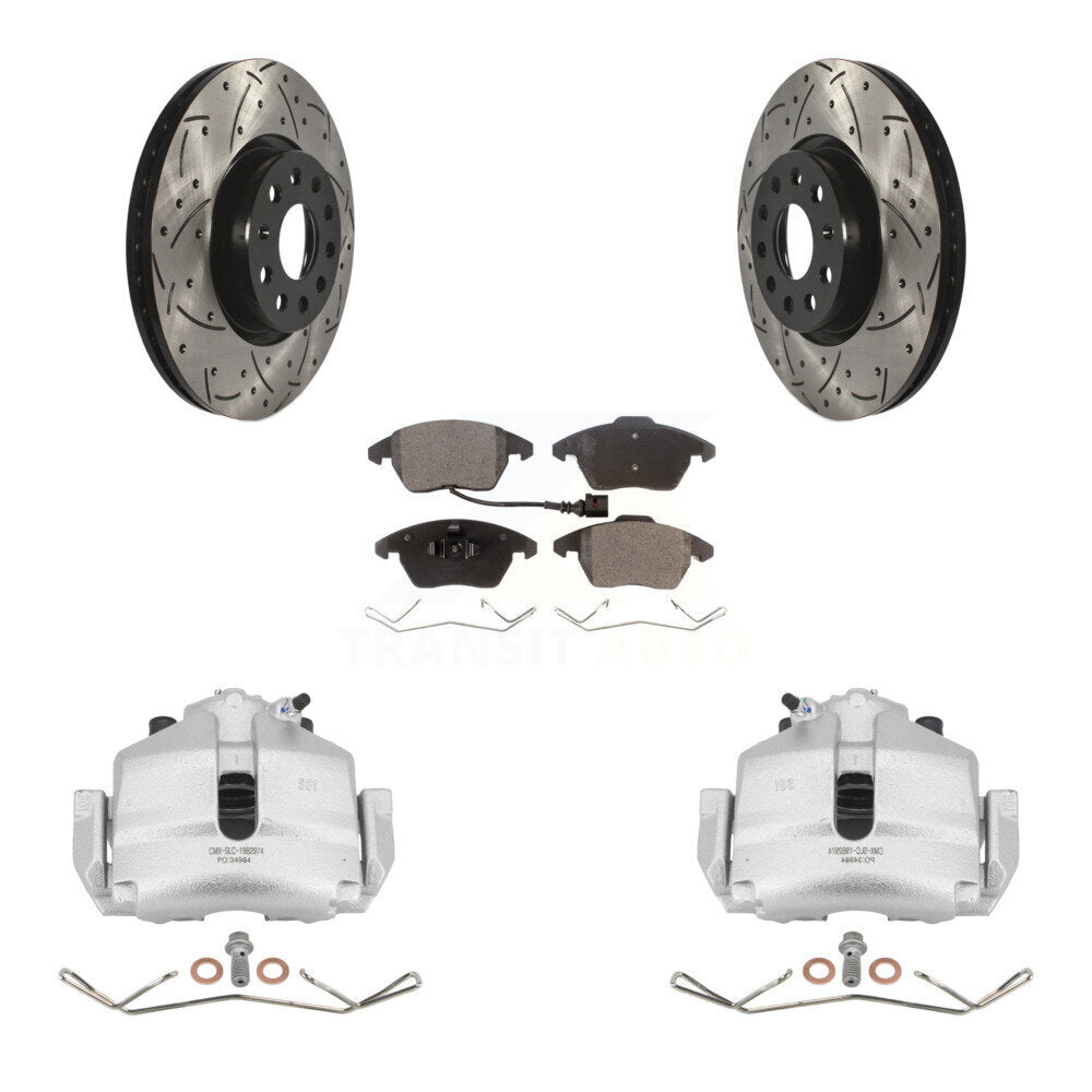 Front Disc Brake Coated Caliper Drilled Slotted Rotors And Semi-Metallic Pads Kit For Volkswagen Jetta Audi A3 Golf KCD-100061P
