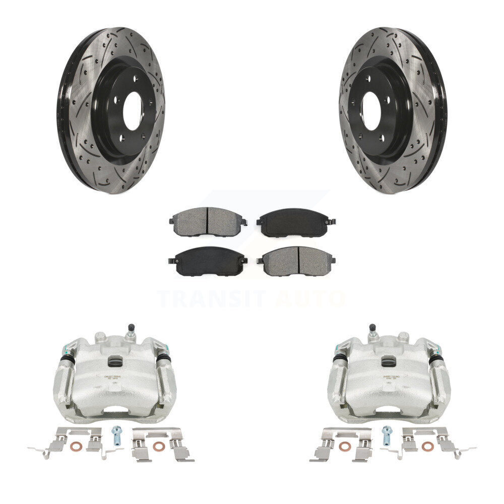 Front Disc Brake Coated Caliper Drilled Slotted Rotors And Semi-Metallic Pads Kit For Nissan Sentra Juke KCD-100076S