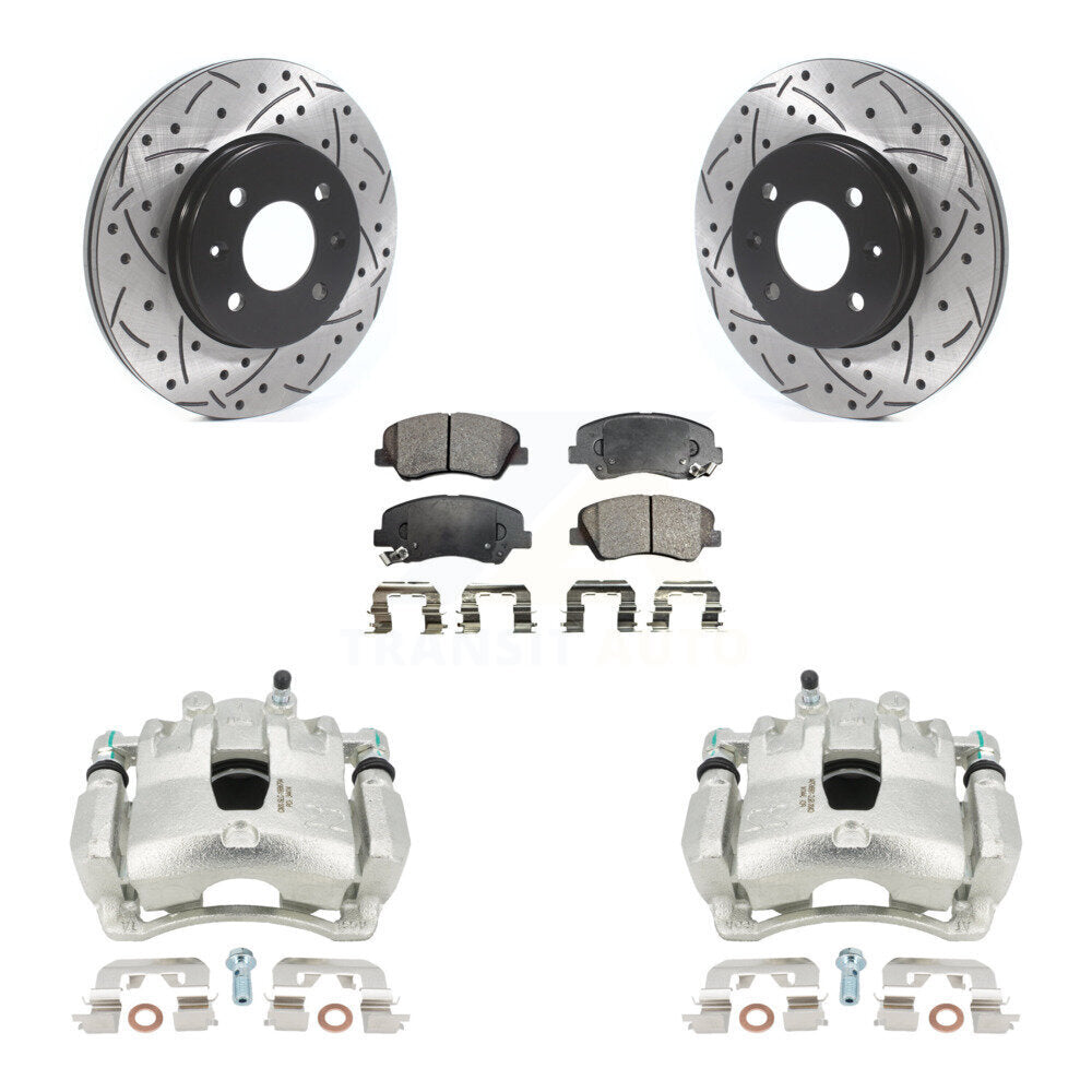 Front Disc Brake Coated Caliper Drilled Slotted Rotors And Semi-Metallic Pads Kit For Hyundai Accent Kia Rio KCD-100081P