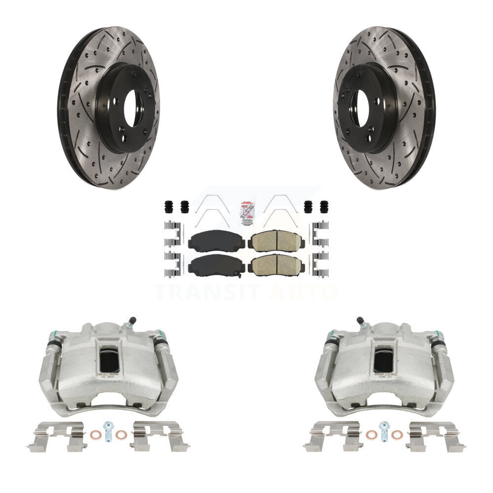 Front Disc Brake Coated Caliper Drilled Slotted Rotors And Ceramic Pads Kit For Honda Accord KCD-100088N