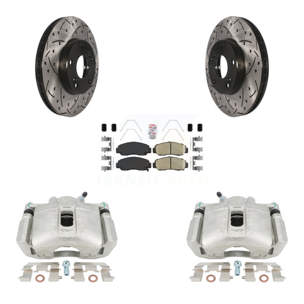 Front Disc Brake Coated Caliper Drilled Slotted Rotors And Ceramic Pads Kit For 2003-2004 Honda Accord Sedan with 3.0L Manual transmission KCD-100090N