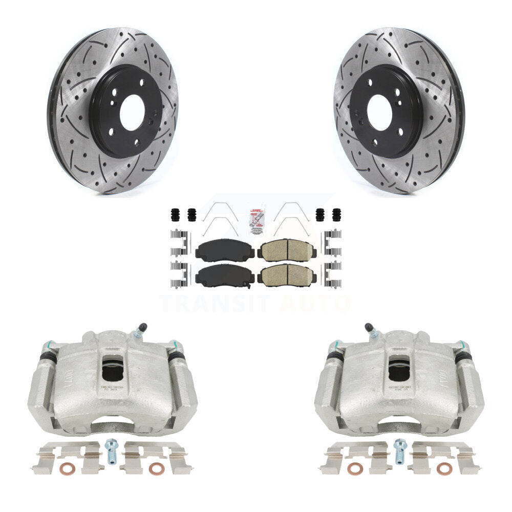 Front Disc Brake Coated Caliper Drilled Slotted Rotors And Ceramic Pads Kit For 2005-2007 Honda Accord Sedan with 3.0L GAS engine Manual transmission KCD-100096N